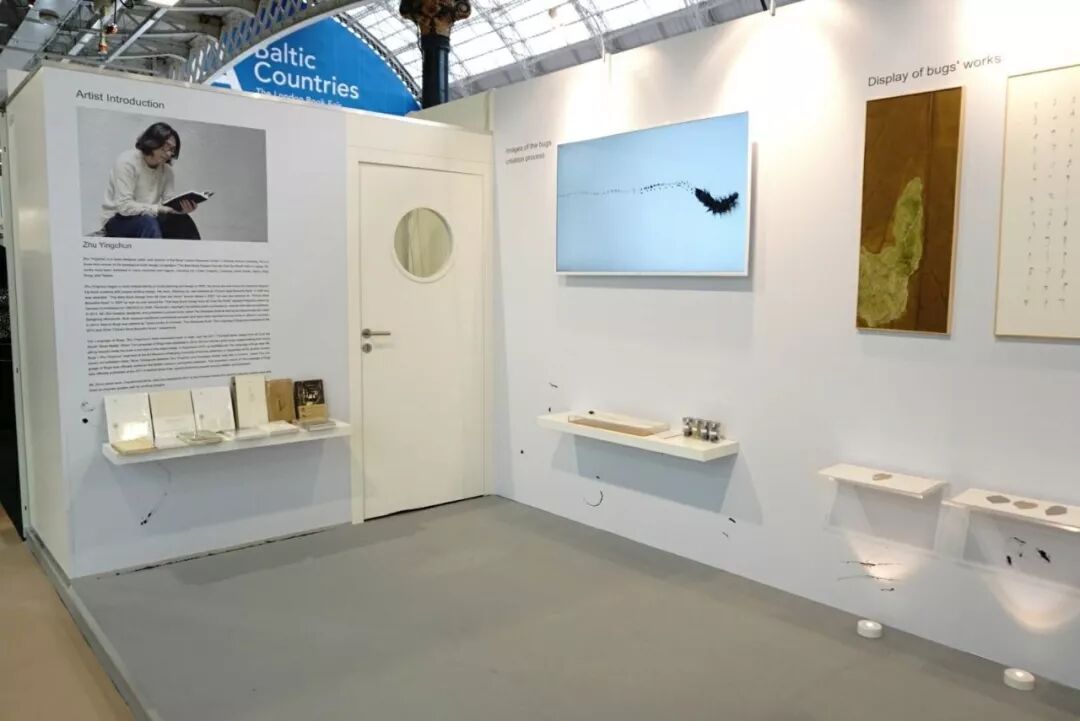 本次伦敦书展,广西师范大学出版社“走出去”品牌艺术之桥为朱赢椿和他的《虫子书》(TheLanguage of Bugs)提供了独立展位,以纯白色的色调,简洁、富有逻辑感和设计感的风格成为了书展中的一抹亮色,吸引了中外参展商的目光。本届艺术之桥的展台由朱赢椿先生亲自设计,几个区块用影像+实物、理念+实践、展示+互动的形式为读者展现了一个艺术家完整的创作过程和设计巧思。